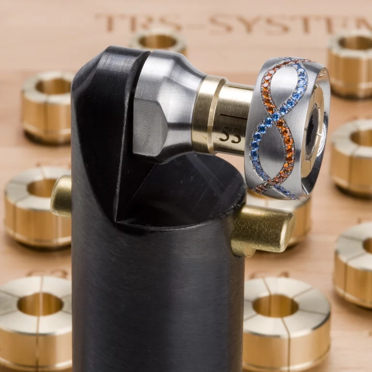 Unser TRS-System wird komplett geliefert, inklusive Spanndorn und Aufsätzen der Größe #45 bis #77 mit einer Breite von 6mm. Alles ist übersichtlich auf einem lackierten Buchenholzbrett angeordnet und beschriftet, um Ihnen eine optimale Arbeitsumgebung zu bieten.